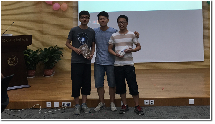 随后,团总支书记裴香涛老师、班主任刘毅老师以及班级团支书梁林波同学为大家颁发了前几轮游戏中累计积分最高的前三名的奖品。