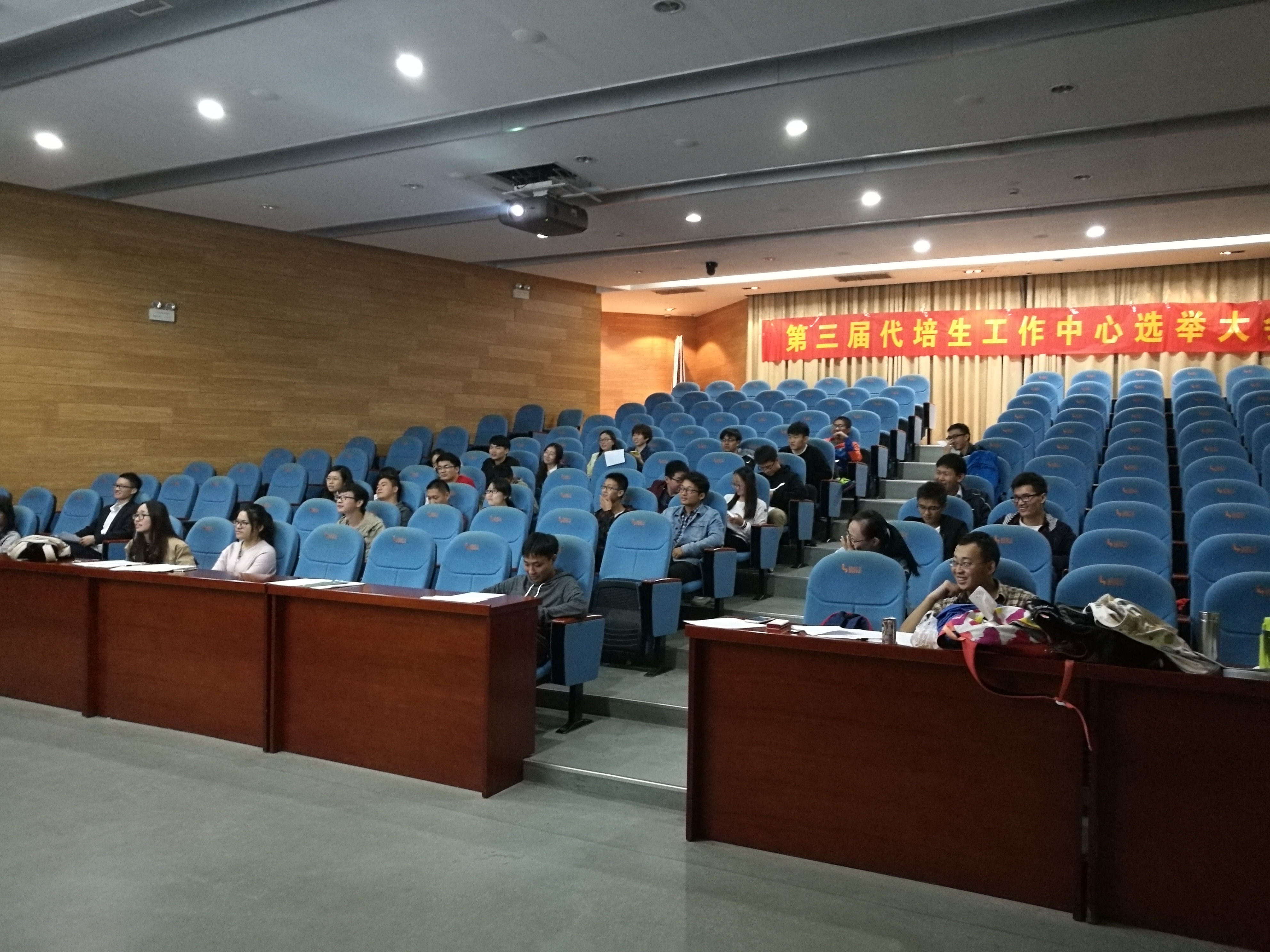 2016年10月16日晚,中国科学技术大学第三届代培生工作中心筹备选举会议在东区环境资源楼学术报告厅成功召开。出席会议的有校研究生会副主席、代培生工作中心秘书长张艳敏,外联部部长施倩,项目负责人吴衍麒,代培生工作中心筹备项目组工作人员以及第三届代培生工作中心的干事和干部候选人。此次会议由代培生工作中心筹备项目组成员夏凤艳主持,会议主要议程是选举中国科学技术大学第三届代培生工作中心主任、副主任。
