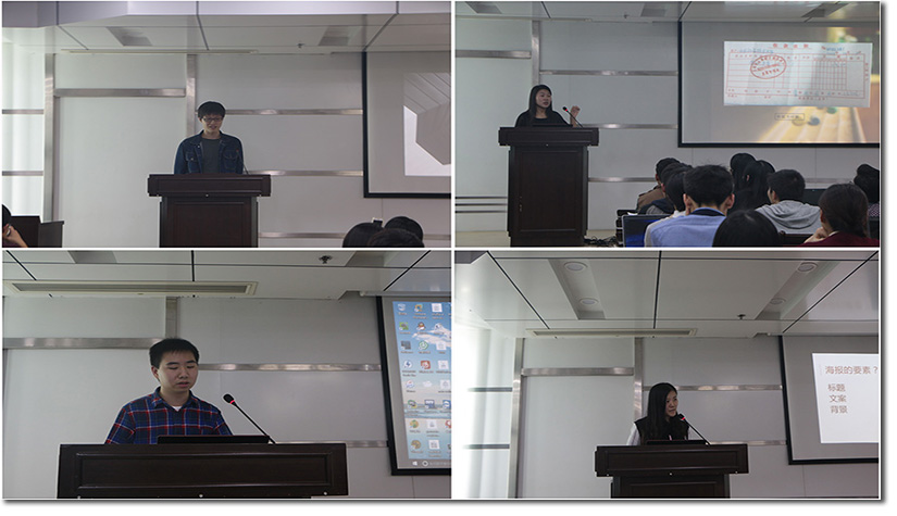 然后,陈务远同学向台下观众详细讲解了赞助谈判工作中的一些关键点,并强调了适当的技巧与耐心在赞助工作中的重要性;杨尊同学则向台下观众介绍了财务报账的流程、所需的报账材料,以及一些财务小技巧;俞超杰同学利用秀米软件在现场为台下观众实际演示了如何编辑一篇优秀的微信稿件;罗勖同学则以海报的制作为切入点,介绍了PS软件的一些基本操作。他们的讲解都给在场所有干部留下了十分深刻的印象。
