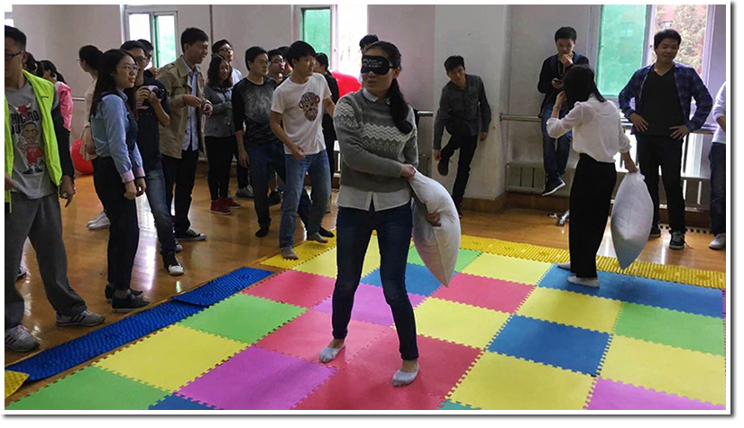本次内联活动共有三个趣味项目,分别是枕头大作战,合力吹气球,口口相传。首先展开的便是枕头大战:两支队伍分别扮演攻击者与被攻击者的角色,在指压板围成的场地上相互对抗,直到防守一方的参赛队员被全部淘汰为止,在活动当中,各个小组的组员都为了自己所在的小组获得荣誉均拼尽全力。场面十分激烈。经过紧张的角逐,女生部、外联部以及主席团获得了枕头大战的胜利。