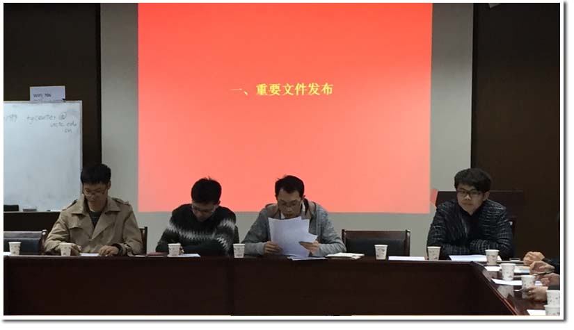 在会议第三项议程中,解虎跃主席对上学期的工作进行了总结,并带领大家一同认清本学期的形势。上学期,校研究生会举办了“美丽邂逅·Finding You”、“中国科学技术大学新年联欢晚会暨代培生联谊晚会”等活动,各部门工作也有条不紊地展开。解虎跃主席对上学期的工作给予了充分的肯定和赞赏,重点表扬了校研会内部团结一心的氛围。与此同时,解虎跃主席也指出,本学期的形势依然严峻,校研会仍然面临着改革和创新的压力,希望各常委、部长能够灵活借助校研会的优势,努力克服存在的不足,带领全体干部一起更上一层楼。