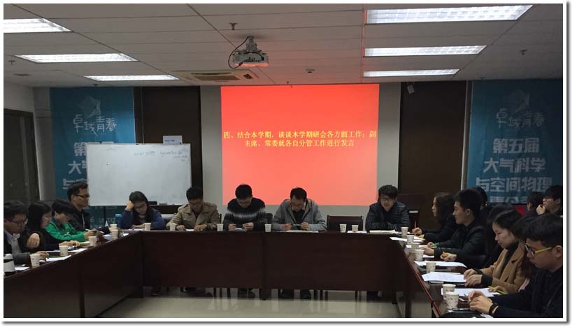 2017年2月16日晚18:30,2016-2017学年第二学期校研究生会第一次工作务虚会暨第一次工作例会在东区教学行政楼地空学院702会议室召开。校研究生会主席、副主席、常委、部长、副部长及各部门代表参加了本次会议,会议由校研究生会主席解虎跃主持。
