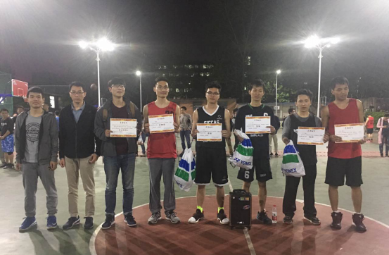 校研会主席解虎跃,常委兼代培生中心秘书长徐武同为四强球队、篮球赛MVP及最佳啦啦队颁发奖状、奖品,并合影留念。各支球队代表表示感谢球队成员的努力及啦啦队的助威,同时感谢有这样良好的以球会友的交流平台,今后将会更好的加强各代培所间的友谊交流。