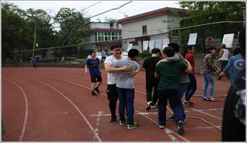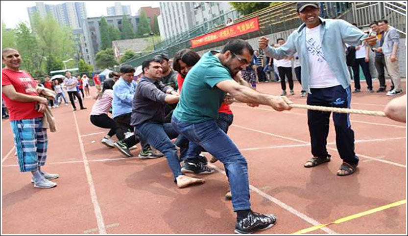 开幕式的最后,郑杰老师为本届拔河大赛开哨,随着一声哨响,由留学生和项目组成员带来的表演赛使整个操场瞬间沸腾起来,同学们热情高涨,随后比赛正式开始。