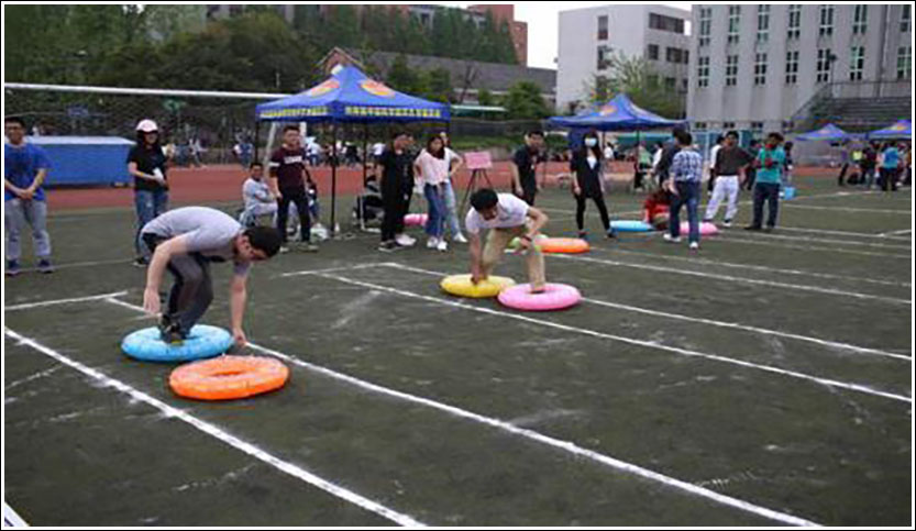 在拔河大赛期间,除了比赛区,现场还设置了游戏区和摄影展示区。在游戏区安排了“旱地冰球”“球球大作战”“小马过河”“坐地起身”等丰富多彩的趣味游戏,让同学们体验不一样的精彩。