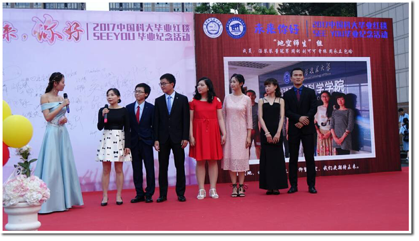 红毯嘉宾中最后一位是地球与空间科学学院的汤琴琴老师,她带着班级中六位大四毕业生进行红毯走秀,展示了科大毕业生们朝气蓬勃的风采,也送上了一份来自班主任的毕业祝福。四年时光,匆匆而逝,但我们永远不会忘记,是老师陪伴着我们度过了或欢喜或艰难的科大岁月,今天,我们以此向老师表达最诚挚的敬意!