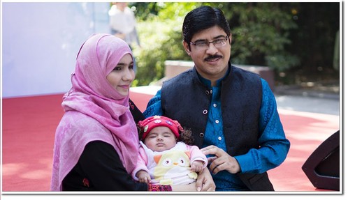 一对留学生夫妇带着他们新降生的孩子来到了活动现场,热闹喧嚣的气氛与三口之家的幸福温馨相互映衬,显得异常和谐。留学生们在此次中外文化交流节中,感受着文化碰撞带来的快乐,洋溢着幸福的心情。