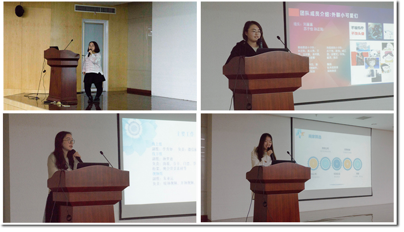 接下来,各职能小组组长对各组工作进行了简单的介绍,包括小组成员,组内分工,任务介绍,时间安排等。