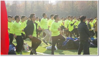 在正式跑步活动开始前,选手们在健身教练的带领下,做起了热身运动,实用而又有趣的健身操给大家带来了很多欢乐。
