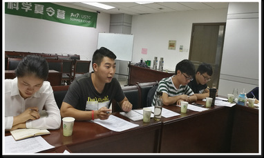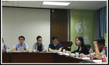在会议第四项议程中,副主席谭文周、常委朱胤臻和创新发展部部长刘烨秋分别就暑期博士生实践服务团的工作进行了总结。谭文周副主席提到,在阜阳为期五天的扶贫调研,去了很多基层一线,受到了当地党政领导的热情接待,进一步了解了国家的扶贫政策和当地的实际情况,同时也极大增进了团队内部友谊,最后形成了五万余字的调研报告,成果丰硕。朱胤臻常委表示在调研过程中大家都有所成长,同时也对产业园提出了自己的想法和建议。刘烨秋部长也分享了自己的感悟,她表示团队成员在交流讨论中相互启发,同时也拉近了各个部长之间的距离。