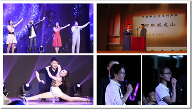 微信墙互动环节过后,晚会进入了第二篇章。歌曲串烧引得台下的观众们互动频频;相声社带来的《智取威虎山》包袱一个接一个,捧哏、逗哏配合地天衣无缝,台下不时爆发出一阵阵欢笑;学生体育舞蹈协会带来的莎莎舞《mojito》动感激情,活力四射,将晚会推向了新的高潮。