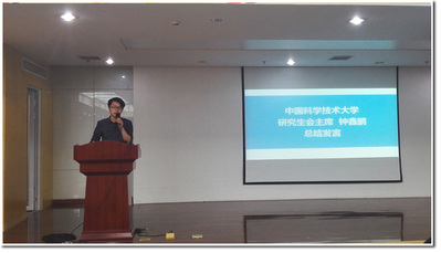 最后,校研究生会主席钟鑫鹏进行了总结发言,钟鑫鹏主席首先感谢了各基层院系研究生会一年来的辛苦付出,希望各院系研究生会代表将本次评比活动当作一个切入点,从现场评审中认真总结其它单位的工作经验,并借此进行相互学习,取长补短,争取把各个院系研究生会都打造成为充满活动,特色鲜明的学生组织。