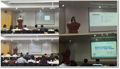 紧接着,各院系研究生会分别作了答辩演讲,演讲包括5分钟的自我演讲及3分钟的提问环节。参与答辩的院系有数学学院、物理学院、化学与材料科学学院、信息科学技术学院、地球和空间科学学院、管理学院、公共事务学院、核科学技术学院、环境科学与光电技术学院、国家同步辐射学院、合肥微尺度物质科学国家实验室、火灾科学国家重点实验室、科学岛分会。各院系纷纷介绍了各自研究生会的组成,人员现状,举办过的活动和特色项目等等。