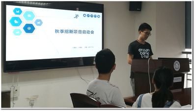 首先,项目组成员进行了简短的自我介绍,在愉快的氛围中大家很快熟悉了起来。接下来项目负责人赵乐陶对此次秋招项目进行了详细的介绍。他对项目的整体情况、各职能小组的任务分工进行了讲解,并希望大家能够积极团结地参与到项目当中去。