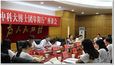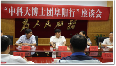 上午十时,博士生团座谈会在阜阳市政府三号楼3号会议室召开。阜阳市政府副市长李红出席座谈,中国科大校团委郑杰老师及博士生团全体成员、阜阳市扶贫办、市科技局等相关部门负责同志参加了座谈,座谈会由阜阳团市委书记程晓醒主持。