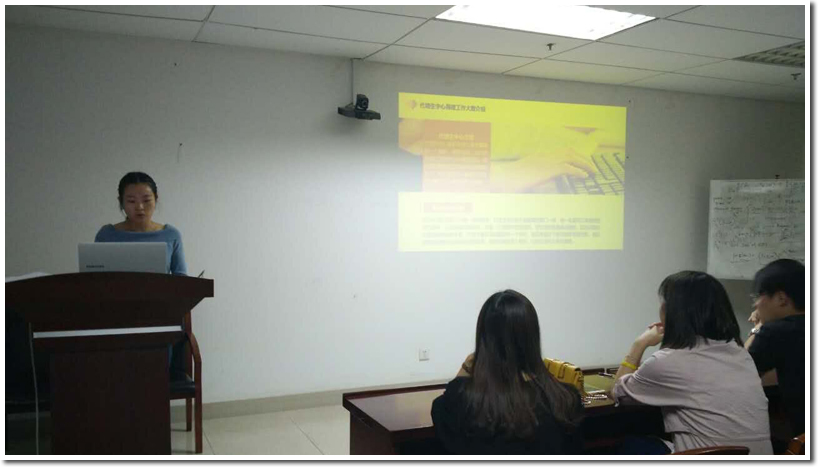接着,项目负责人余涵介绍了筹建代培生中心的活动意义和整体工作流程,强调代培生中心的重点任务是为加强本校同学和代培生的沟通和交流,让其感受科大家园般的温馨。同时她提出工作的核心在于“筹建”,需要项目组“搭架子”,给予代培生中心充分的自由,为此负责人余涵也对整体策划组和外联宣传组的工作提出了要达到“协作、开放、责任、正规、温情”的要求。