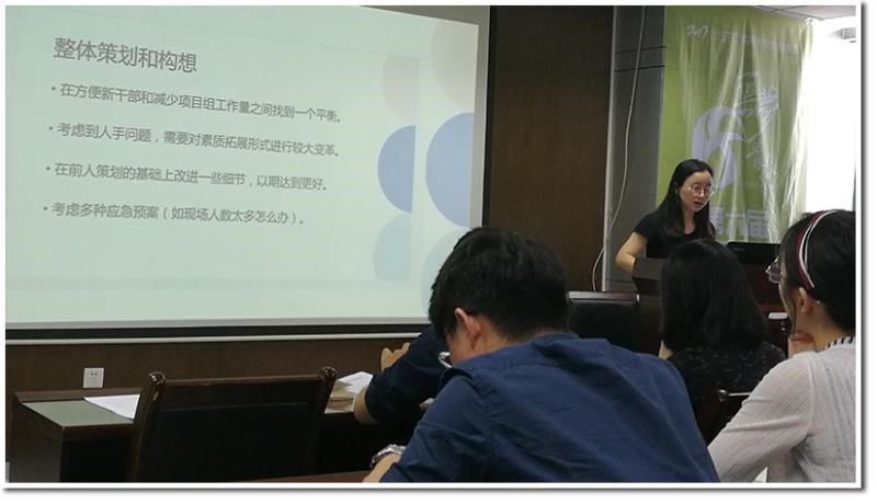 最后,由跟进常委朱胤臻作总结发言。她就项目气氛、工作流程以及项目成员的工作要求做了总结。她还总结道,项目的过程与结果一样重要,总结会就是这样一个把不足暴露出来,让大家反思、改进的地方。希望大家能够带着对这些不足的反思不断成长。同时,也感谢大家在项目实施过程中的辛苦付出,秋招项目取得的成果离不开大家的共同努力。