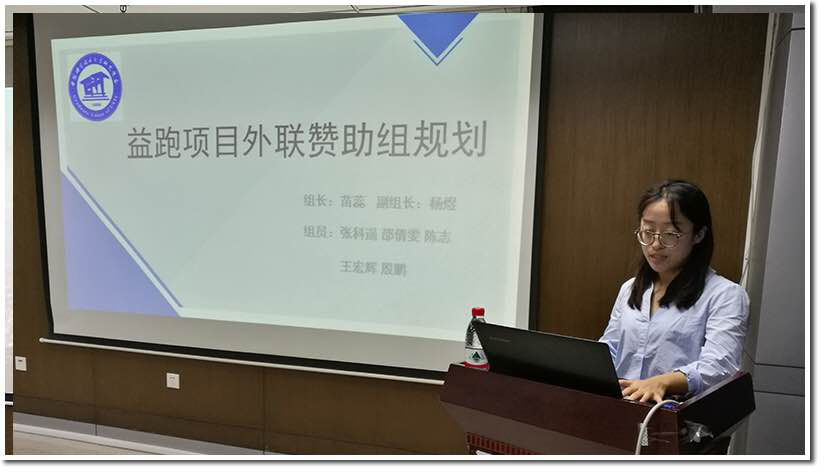 接着,各职能小组组长对各组的分工及计划做了详尽的介绍。首先,策划组组长朱姗阐述了策划组的工作重心。同时,她表达了对首届“益跑”活动的期待,希望各成员可以团结合作、勇于创新,尽心做好第一次“益跑”活动。