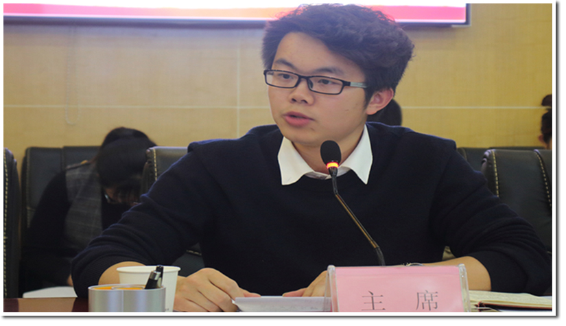 会议第一项,钟鑫鹏主席首先进行了重要文件的发布,发布了校研会[2018]1号_关于增补选举校研究生会第六届委员会常务委员的通知、校研会[2018]2号_关于选举校研究生会常务副主席及选聘主席团助理的通知、校研会[2018]4号_关于赵斌同学任命的通知,并对新一任校研会干部表示了祝贺。接下来,他就即将召开的研究生代表大会基本情况,研究生代表的基本要求及研究生代表大会的重要性三个方面进行了详细的阐述和介绍。最后就本学期的工作安排提出了建议,对校级大会代表选举工作作出了相关部署,要求各院系选举产生的研究生代表必须德才兼备,具备合格的政治素养、良好的群众基础。