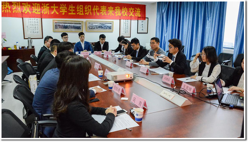 2018年4月22日- 23日,浙江大学党委研工部董先巍老师、浙江大学博士生会、研究生会主席团一行来访我校,并就学生工作进行专题调研交流。