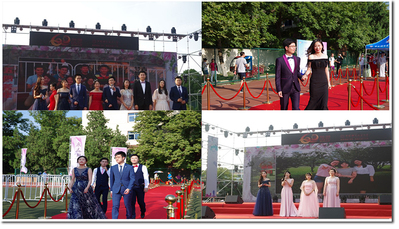 一组组嘉宾,在红毯上走出创意,在红毯上秀出风采,在红毯上演绎最美告别,在红毯上抒发对母校依依不舍之情。