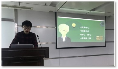 紧接着,赞助外联组组长李守忱讲解了小组的职责。他就对接代培生、对接嘉宾、申请场地、编写赞助策划书、落实合同以及机动任务等问题进行了介绍。同时他也将工作任务进行了明细地划分。他希望小组成员能够有责任心、积极性、细心耐心以及较强的承受能力,做好赞助外联的工作,为项目的顺利开展打好基础。