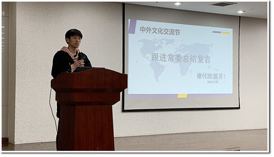 经过了自我介绍,项目负责人赵想春向大家介绍了此次中外文化交流节的项目概况和重要的时间节点,并向项目组提出了两点说明和三点强调。赵想春希望项目组成员要熟悉整个活动的准备流程并保证本次活动有文化、有内涵、有趣味的核心和特点。他还强调整个项目组要保持整体性,在活动筹备和举办期间要保证公平性,同时牢记项目组代表研究生会,代表国家的重要的代表性。