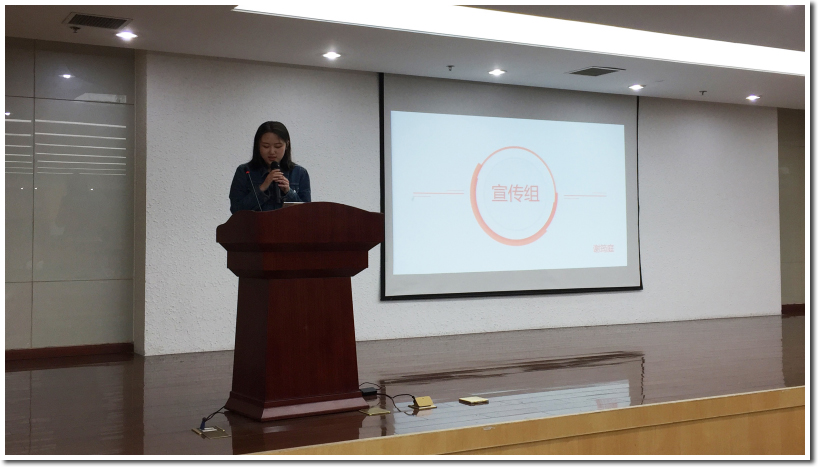 接着策划组组长张澎、宣传组组长谢筠庭、外联组组长黄兴萌依次介绍了各组的人员构成以及组内的具体工作安排和时间安排。