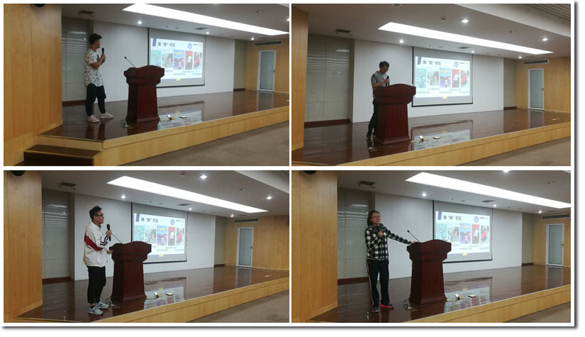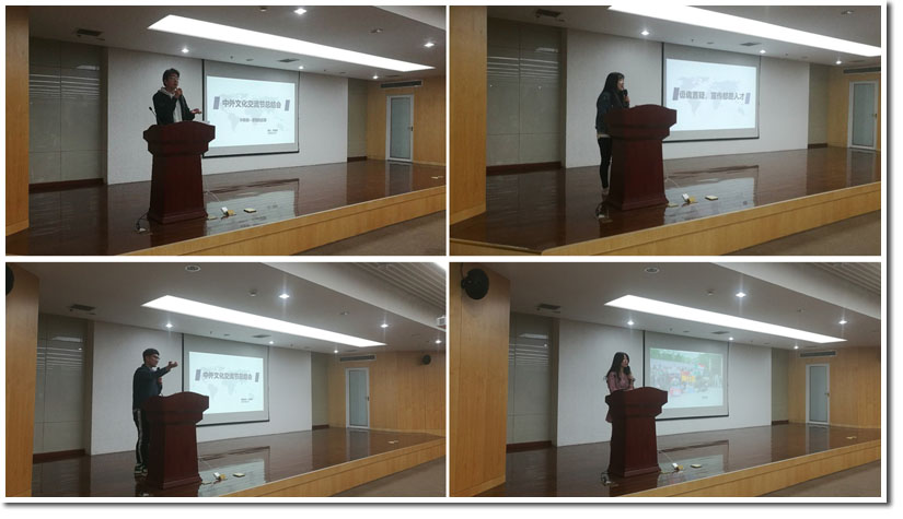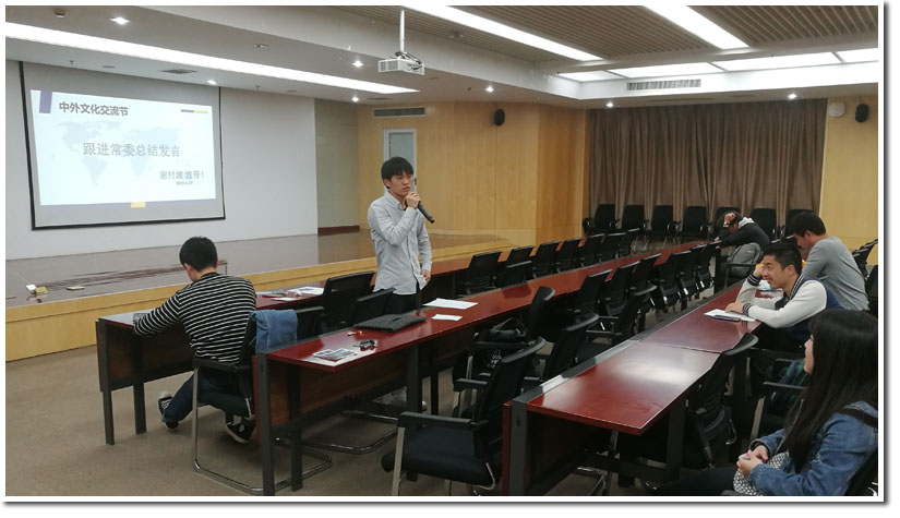 随后,本次活动的策划组组长刘家赓、舞台区负责人程秋霞、宣传组组长郑倩、外联组组长张家玮、赞助组组长彭博、中国展区负责人蒋哲华依次上台做活动总结。他们谈了本次活动的完成的好的地方和不足,也发自内心地谈了对这次项目的感受,他们都表示对工作要认真负责,同时要勇于尝试,敢于挑战。