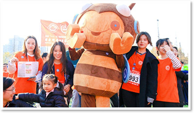 研会宣传点工作人员分工明确,工作井然有序。玩偶“研小蜂”在道路边举着抽纸供大家取用擦汗的场景也成了赛道旁一道亮丽的风景线。