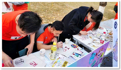 此外,还有专人拍照记录运动员充满活力的风貌,有同学按圈数向运动员分发纪念品,还有DIY游戏让运动员在疲惫时放松一下。