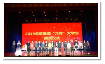 晚会现场还揭晓了2019年度最美“六有”大学生获得者,他们分别是吕昊、林思锐、徐九赐、林丹、王文帝、宋相杰、齐长金、朱胤臻、吴玥、司志伟。提醒我校同学,要时刻牢记总书记嘱托,做“有理想、有追求,有担当、有作为,有品质、有修养”的大学生。校党委副书记蒋一老师及各学院领导为获奖同学颁奖。