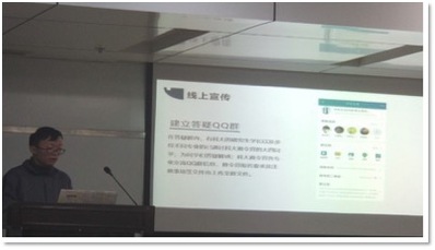 大会的第一部分是由各活动的项目负责人上台介绍与回顾所在部门已经举办的活动。来自办公部、文体部、宣传部,学术部,外联部的负责人为大家介绍了例如彩虹跑,高薪面试基地,名师讲坛的活动,同时他们也对活动中的各项工作进行了总结。通过参与活动,尤其是与外院合办的大型活动,同学们得到了锻炼,众多来自不同学院的小伙伴一起合作,也增强了学院间的友谊。最后,各项目负责人分享了自己对于活动举行的改进意见。