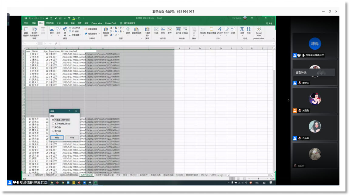 接下里就是趁热打铁的过程,各位学员通过跟着胡坤禹同学在线上一步步演示操作,一次EXCEL表格的处理操作,学员们跟着主讲人一起完成了操作,无论之前是否有过经验大家都收获颇丰。