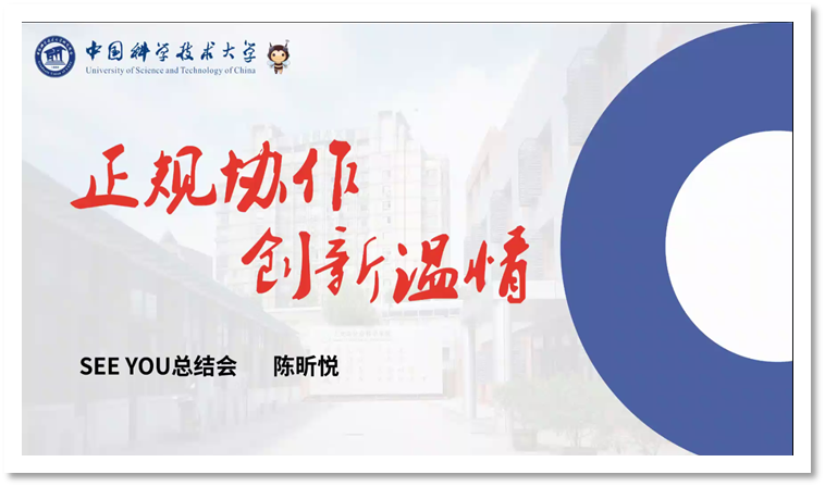 策划组组长计欣晔向大家介绍了策划组成员组成并对成员的付出表示了感谢。接下来对项目启动到结束的所有工作内容进行了梳理,总结不足(和外联对接不足,沟通方面、应急方案有进步空间),最后再次感谢大家的付出并期待着下线见面。