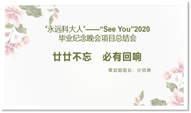 至此,永远科大人“See You”2020毕业纪念晚会项目总结会圆满结束。