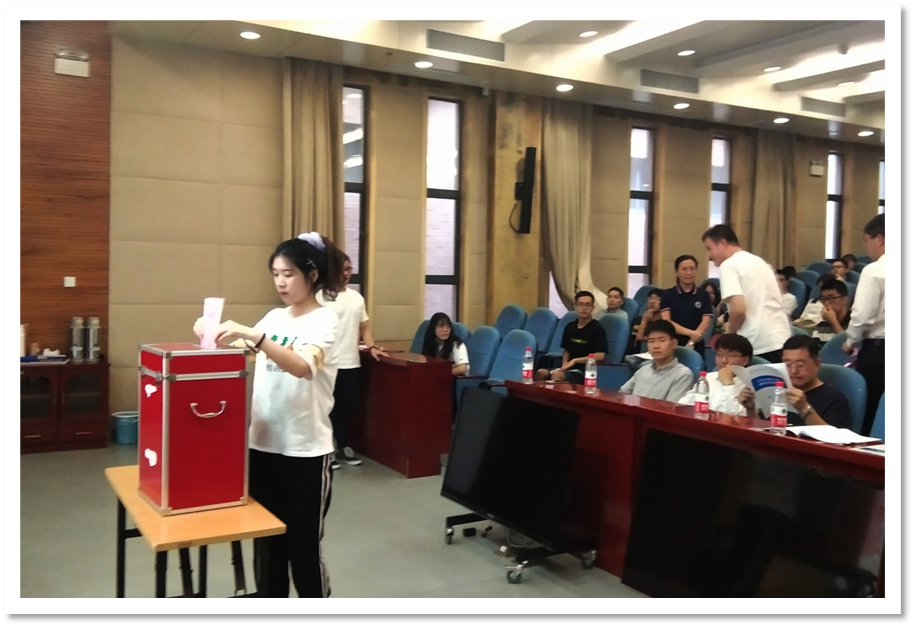 大会选举出席校级研究生代表大会的代表和火灾科学国家重点实验室第十七届研究生会主席团。各位候选人依次上台发表竞选演讲,在经过与会代表不记名投票及计票后,监票人易若龙宣布各位候选人的得票情况,会议选举冯舰锐、刘泓、刘昱君、李昀松、翟宏举(以姓氏笔画为序)为出席校研究生代表大会代表;李凡、冯舰锐、翟宏举(以姓氏笔画为序)为火灾科学国家重点实验室研究生会第十七届主席团成员。