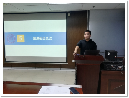 会议第四项,项目跟进李永哲委员进行总结发言。李永哲委员高度评价了大家完成项目的速度,并表扬了大家在面试阶段工作,点出了我们项目的重点是要流畅,正规,每个项目组成员必须明白自己在项目中的位置,要认真对待自己的任务。之后对人员分工太简单这一问题提出了自己的建议,并列举了其他项目中人员分工的要点给大家以参考。在最后,表达了自己对明天会议顺利举办的祝福,希望能够办成一个严肃正规的选举成立会,办成一个历届最好,最正规的选举成立会。