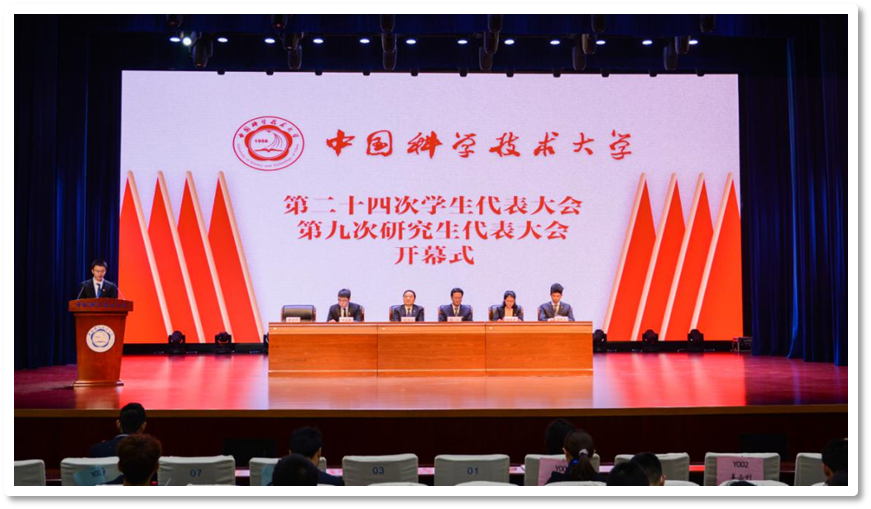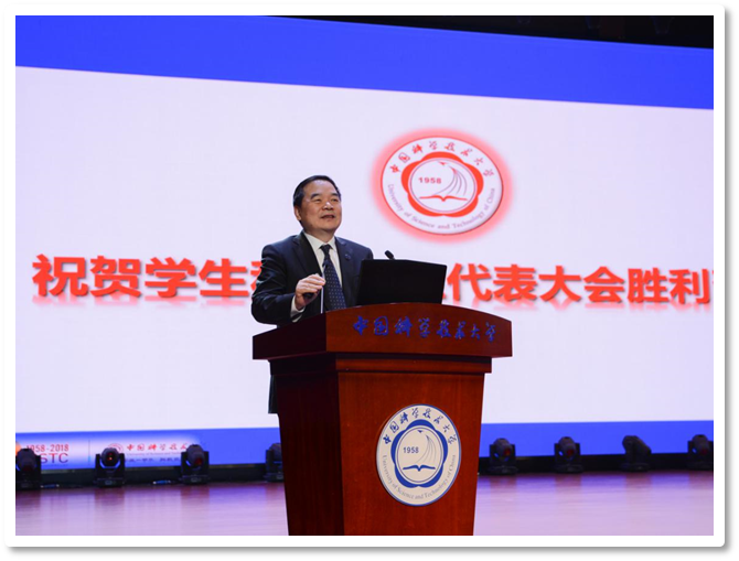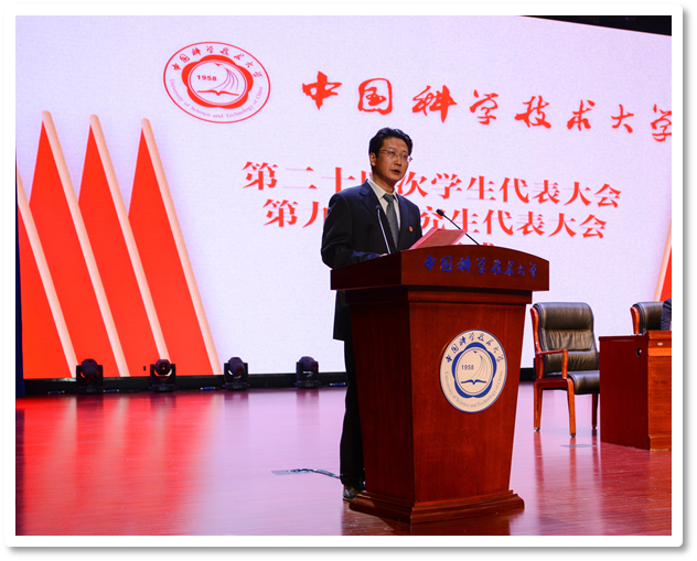大会在豪迈雄壮的国歌声中开幕,校长包信和作校情报告,校党委常务副书记蒋一、省学联驻会主席邱浩伟、校团委书记杨晓果分别向大会致辞。