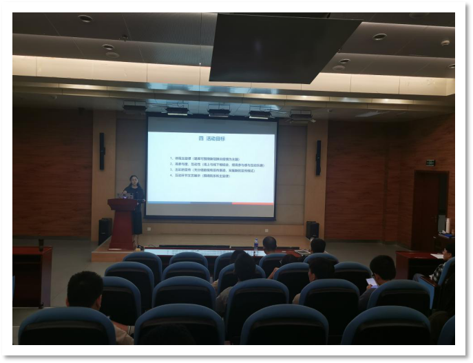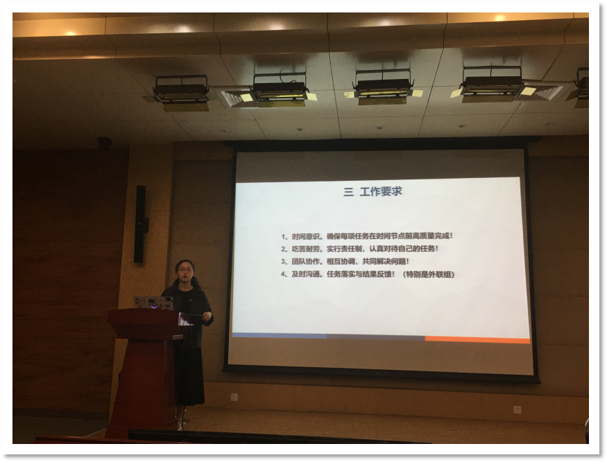 接下来由朱玥玮对会议内容再次进行了强调,对于本次各项目组成员的工作要求,提高时间意识和发扬吃苦耐劳精神等,并提出了本次活动目标,一定充分借助各宣传渠道,并体现本次活动的主旋律。