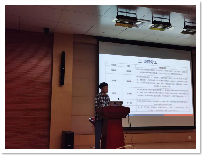 会议开端,韩路豪对本次活动进行介绍。主要了“巅峰对决”项目的主体工作内容,项目组人分工及项目的整体进度安排等,并特别指出此次项目各小组一定要确定好各项任务分配的时间节点,做好各段时间的任务分配,确保活动的顺利举行。