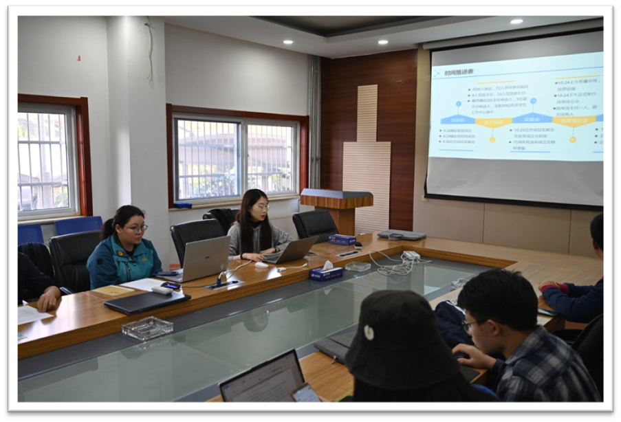 然后,策划会务组组长周尚珺对工作进行了回顾梳理。她表示策划会务组按时按量地完成了各次会议的组织以及会务资料的撰写,同时她也希望选举成立会的流程能向更正规的方向发展,并可邀请往届所系学生工作中心主任在成立会上发言,丰富会议内容。