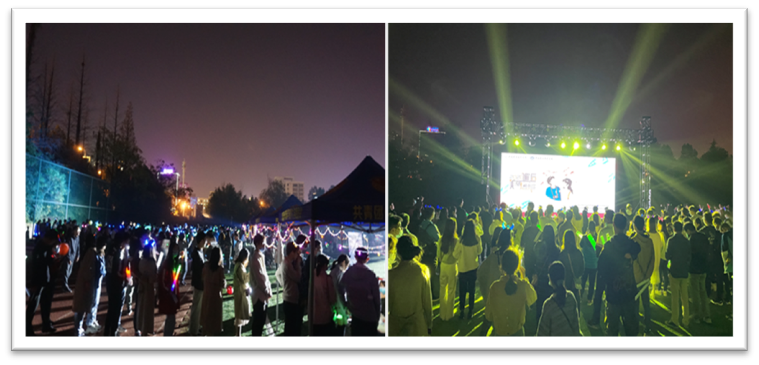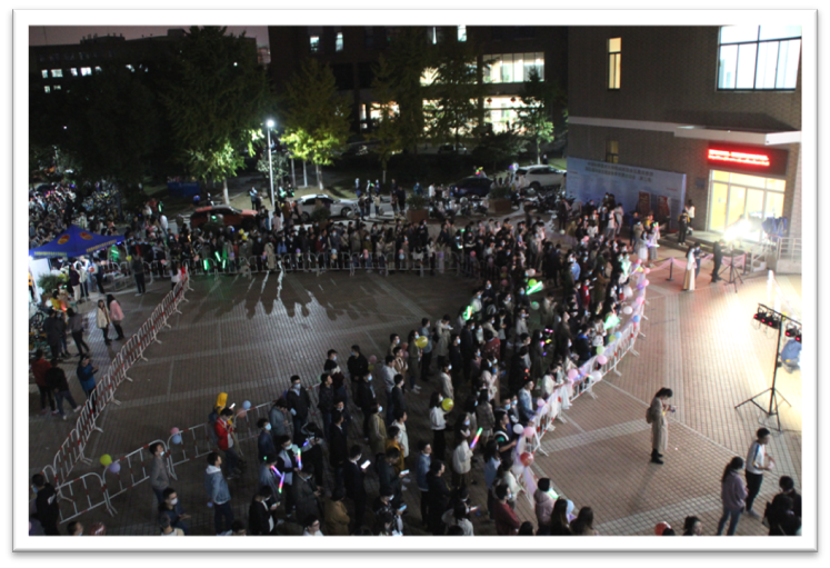 十一月的夜晚,阵阵寒意也抵不过青春似火。内场尚未尽兴或未获得门票的同学们欢聚于操场,欣赏精彩绝伦的舞台表演,体验温馨有趣的灯光游园会,打卡旖旎缱绻的心动长廊,感受“美丽邂逅”蓬勃的激情与活力。
