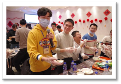 冬至是中国的传统节日,本次联谊活动围绕包饺子这一风俗习惯,精心设置了团圆包饺子、竞速挑战、合作挑战和创意挑战四轮游戏。同学们在工作人员的引导下,一边观看教程视频,一边撸起袖子迫不及待地参与到挑战当中。大家互相合作、各显神通,充分展现自己的创造力和想象力,包出的饺子也是花样繁多、极具特色。最终根据现场计时和饮食服务集团老师的投票结果,评选出了各轮游戏的获奖同学,现场欢声笑语不断,洋溢着节日来临的喜悦和温暖。
