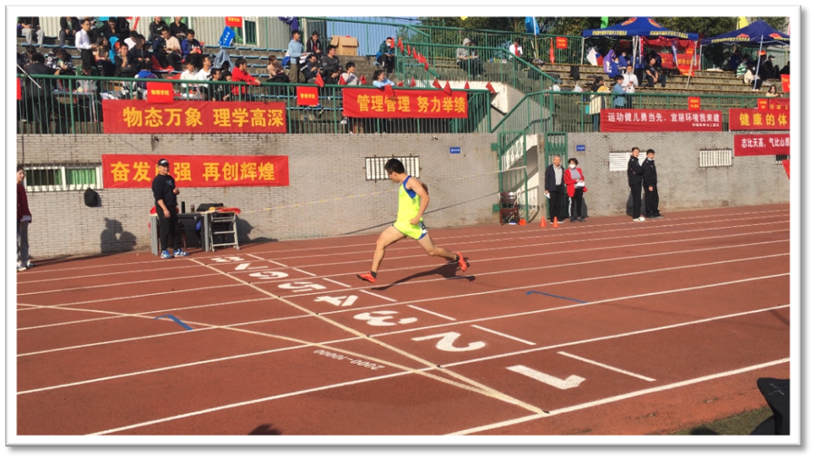 李国春同学如箭出弦,以11.69s惊人的速度,一举摘下了男子100米第一名的桂冠!同时以24.90s,取得了男子200米第三名。