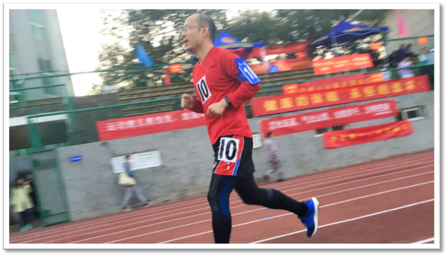 张林鹤老师自信轻松的完成比赛,获得男子教工3000米第八名的好成绩。
