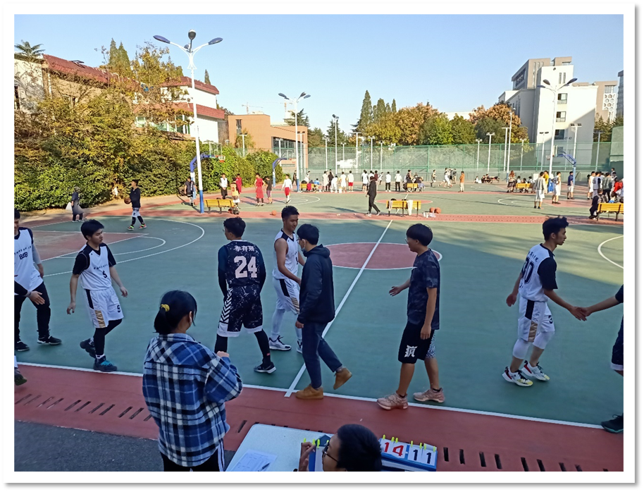裁判哨声响起,比赛结束,火工联队与计科一队友好握手,庆祝胜利。在本场比赛中,运动员们在赛场上勇于拼搏,打出了气势,赛出了风格,赛出了水平。