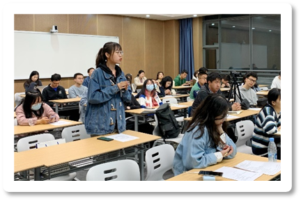 在答疑环节,席正老师从自身经验出发,对同学们的提出的如何积累素材、如何应对现场突发情况等问题进行了耐心解答。随后席正老师邀请两位同学上台进行即兴演讲,并对两位同学的表现给予了建议和指导。