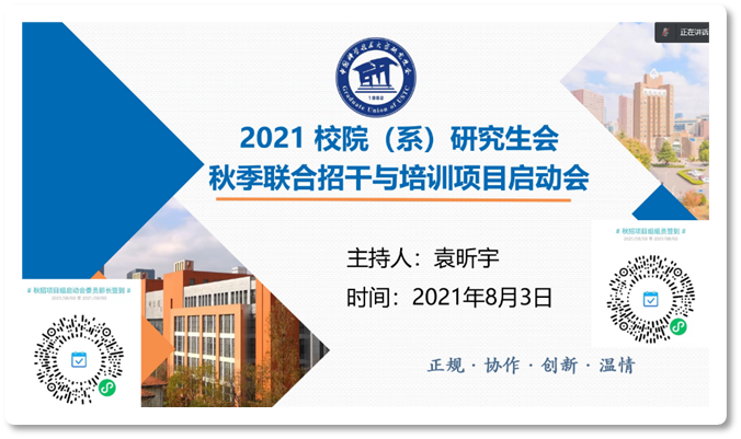 至此,2021年校院(系)研究生会秋季联合招干与培训项目启动会圆满结束,最后预祝本次研究生会招干与培训项目顺利举办!