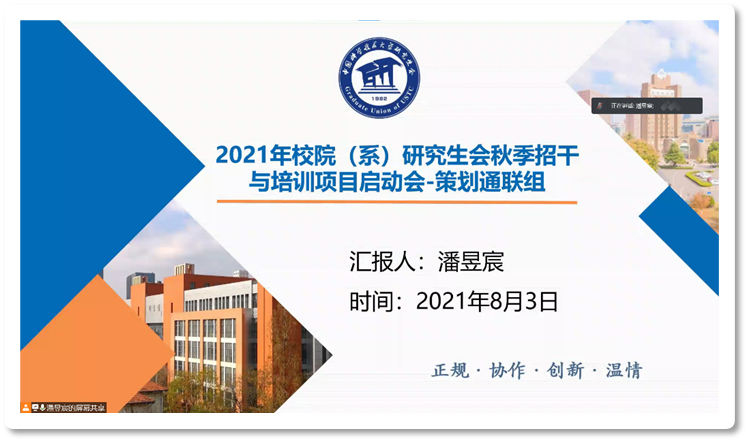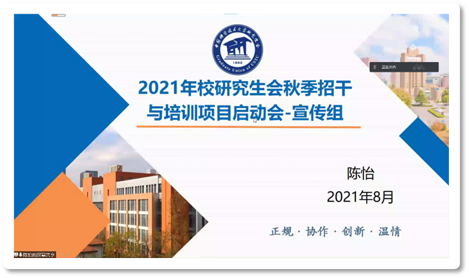 至此,2021年校院(系)研究生会秋季联合招干与培训项目启动会圆满结束,最后预祝本次研究生会招干与培训项目顺利举办!